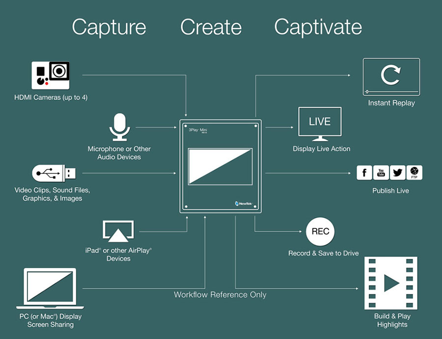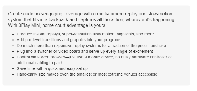 be constrained to a rack, booth, or truck. 3Play Mini gives you