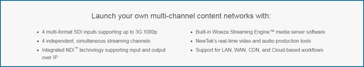 3G/HD/SD-SDI hardware connections, over IP via NDI™, NewTek’s