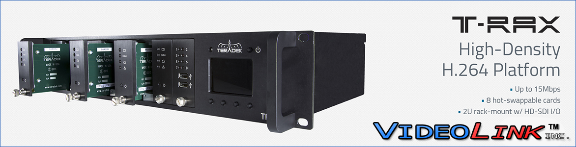 T-Rax is a flexible enterprise rack mount solution for digital video broadcasting. As a blade system, T-Rax allows you to add or remove a variety of Teradek solutions on the fly, including H.264 encoders and decoders and control platforms such as Sputnik. The system supports any combination of up to 8 hot-swappable cards that can be tailored to your unique requirements.T-Rax supports multiple configurations that can be easily customized at a moments notice. Whether you’re outfitting the T-Rax with 8 encoder cards for multi bit rate streaming or a combination of encoders, decoders, and Sputnik for master control, T-Rax is the easiest way to scale an IP video workflow.