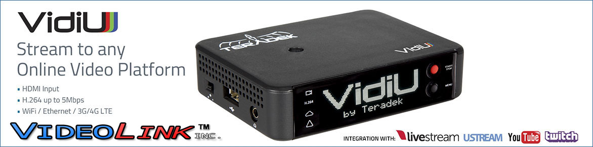 The Teradek VidiU gives you the freedom to broadcast live high definition video directly to the Web without a PC. Whether you’re streaming out of a video switcher or wirelessly from your camera, VidiU allows you to go live when you want, where you want.